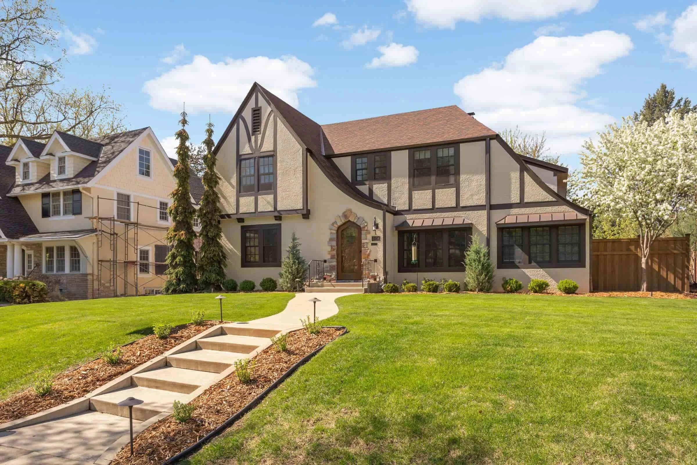 Timeless Tudor nestled in the heart of HIstoric Country Club with a backyard paradise beyond compare! Totally updated exterior includes new stucco, hand-set ornamental stone, Marvin Integrity windows, wood trim replacement and custom copper awnings. Inside, the sunken living room, with original beamed ceiling, centers around a grand stone fireplace. The elegant, paneled dining room includes a Cambria-topped built-in bar with generous storage. The gourmet eat-in kitchen leads to a well-designed mudroom corridor with ¾ pool bath, laundry, lockers and access to the heated, attached garage. A cozy office, with built-in work station, flows to a charming paver patio, where the 6 person spa lives. The luxurious primary suite features sweeping treetop views, spa-like bath, and dual walk-in closets. Five bedrooms up offer enough room for family, guests or work. The recently renovated lower-level features a wet bar, gas fireplace, egress windows and many new mechanicals. Outside, enjoy a dining pergola with retractable screens, built-in outdoor kitchen and heated concrete pool with diving board.